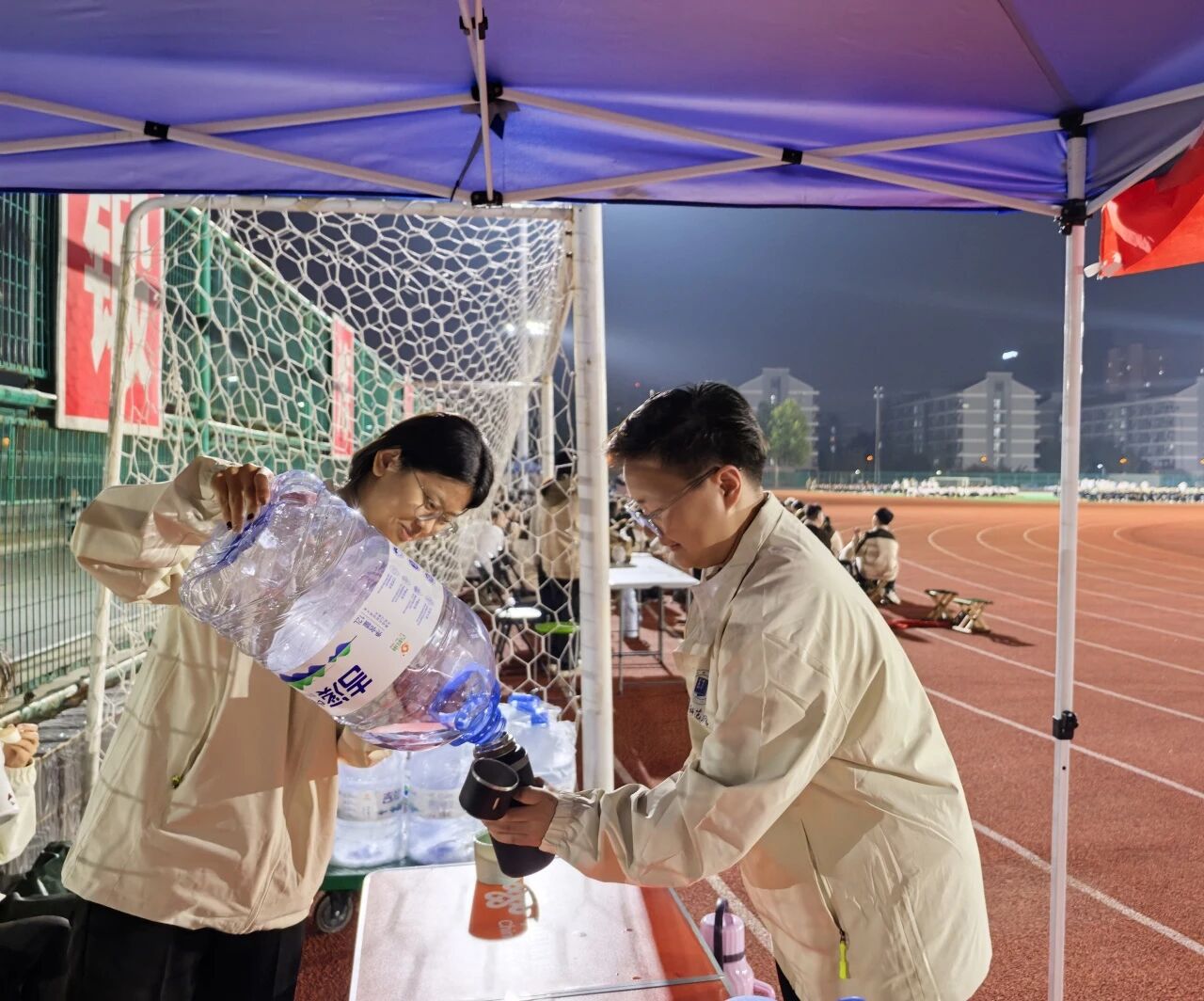 值得一提的是,连队中还有一群特殊的身影——因身体原因见习的同学积极投身训练保障工作。他们主动承担物资搬运、饮水补给、场地协管等任务,用默默付出支持着集体,以实际行动诠释着“全员参与、共同成长”的军训精神。